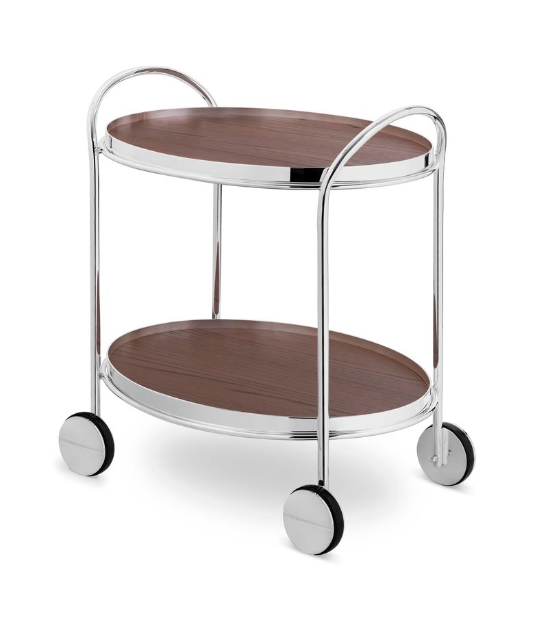 O Carrinho Fiocco Oval Prata Pequeno 4 rodas com 2 madeiras alia elegância e funcionalidade, sendo a escolha ideal para compor ambientes sofisticados e práticos, mesmo em espaços reduzidos. Sua estrutura oval em acabamento prata abrilhantada e os detalhes cuidadosamente trabalhados garantem um visual refinado, perfeito para complementar ambientes formais ou descontraídos com charme e personalidade.