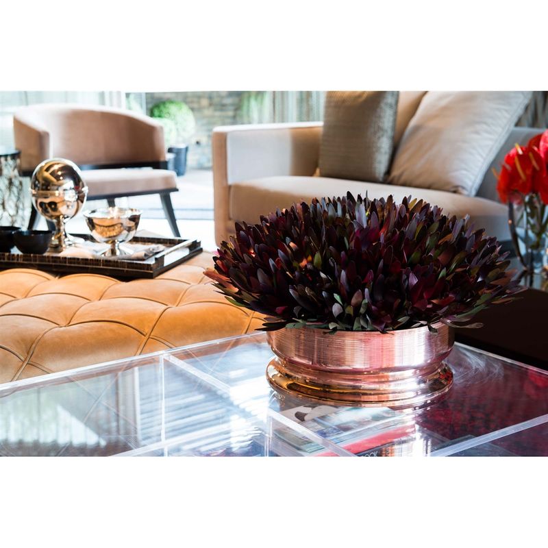 O Centro de Mesa Spin Grande Cobre possui detalhes esculpidos artesanalmente. Foi criado por Baba Vacaro, profissional reconhecida nacional e internacionalmente por sua experiência no mercado de decoração de primeira linha.