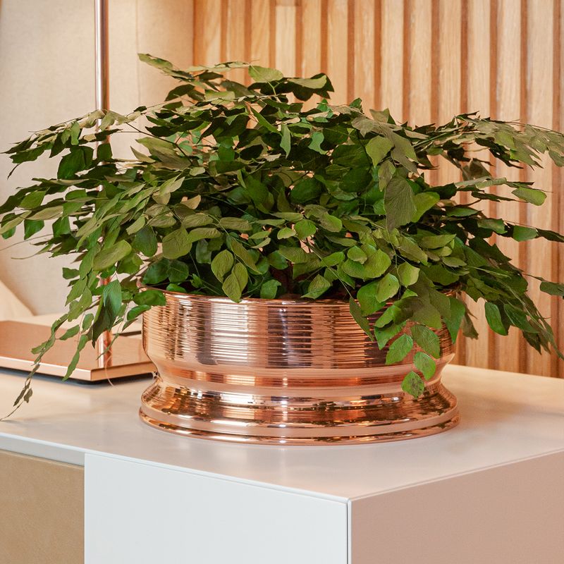 Valorize a decoração do seu lar com o design leve e elegante do Centro de Mesa Spin Grande Cobre.