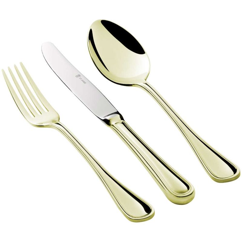 O Faqueiro St. James 130 Peças Windsor Dourado recebe banho Flash de Ouro.